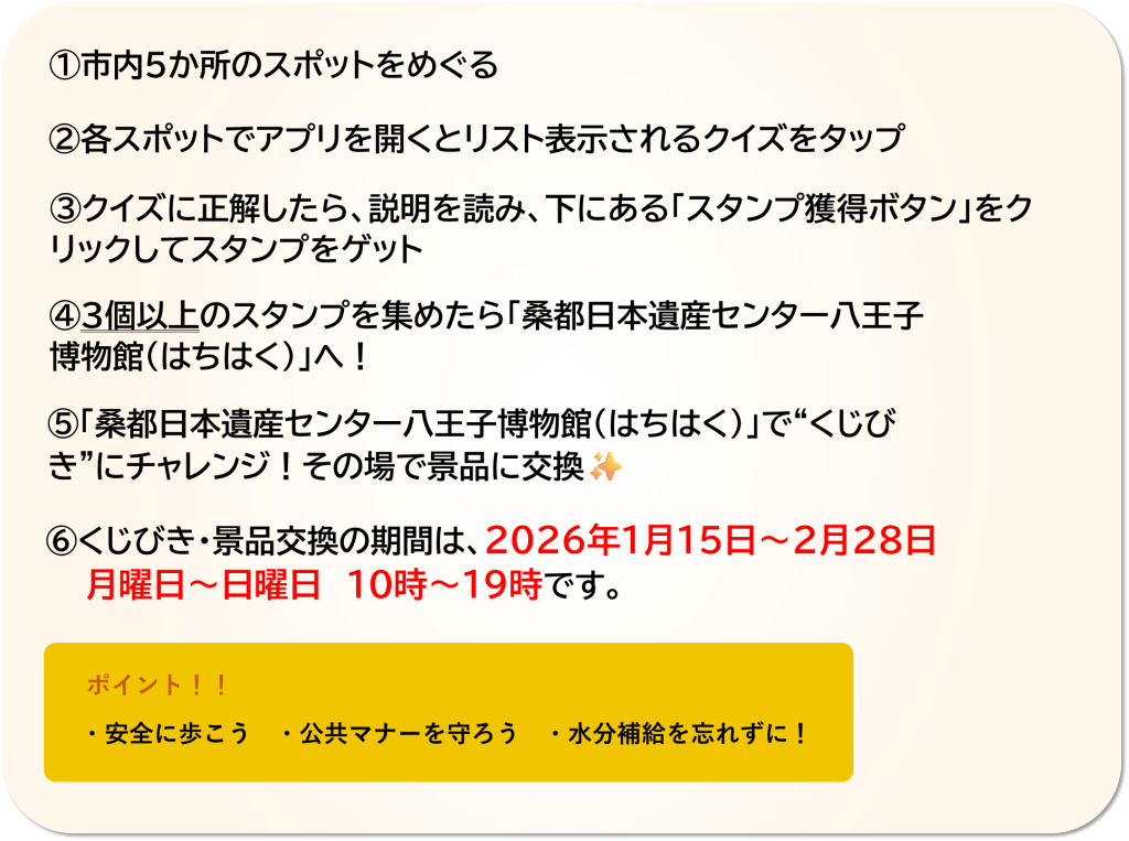 「桑都・八王子クイズスゴロク」のポイントをぐるっとめぐって、スタンプも思い出もいっぱい集めちゃおう!