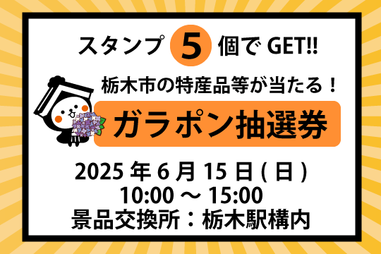 栃木市の特産品等が当たるガラポン抽選会に参加できます。(クーポン使用時、アンケートにご回答いただきます)